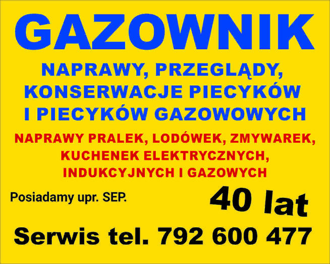 Naprawy przeglądy konserwacje pieców piecyków gazowych . Oraz naprawy pralek .lodówek, zmywarek, ...